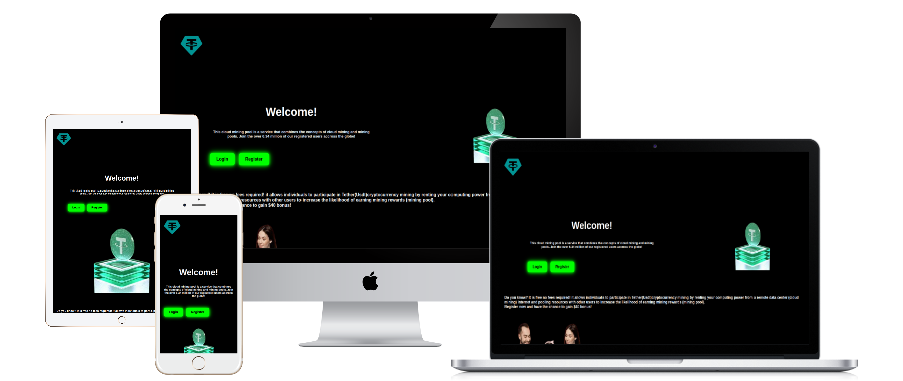 This mining pool provide service to users to earn USDT (Tether) without owning expensive hardware or technical know-how.